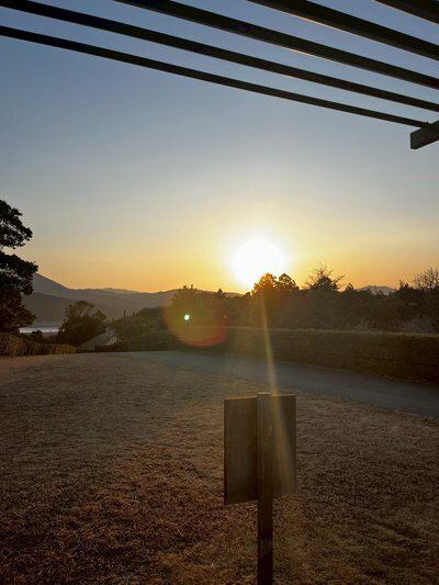 海から見える朝日とは違って、夕日は山に沈んでいくためご覧いただけるのは少しだけになりますが、とても綺麗です。