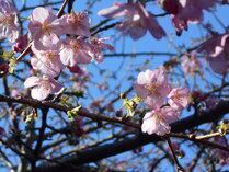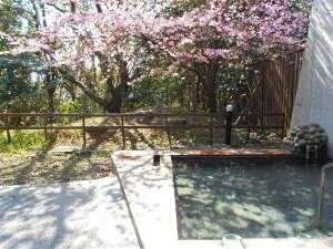 例年2月の見ごろをむかえる露天風呂と河津桜。